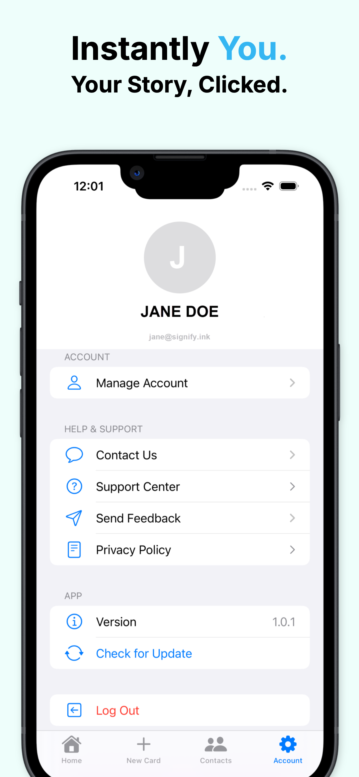 Design your own personalized digital business card with your photo, logo, and sleek templates. Changed your job title or logo? No worries! Update your card easily in the Signify app anytime.